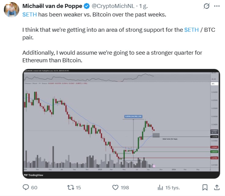 Многие аналитики и трейдеры с платформы X с оптимизмом относятся к текущей ситуации. Аналитик Михаэль ван де Поппе предполагает, что недавнее снятие курсов может быть «последней паузой перед решающим перерывом» и возможностью «купить наследство», которая может показать новые исторические максимумы.