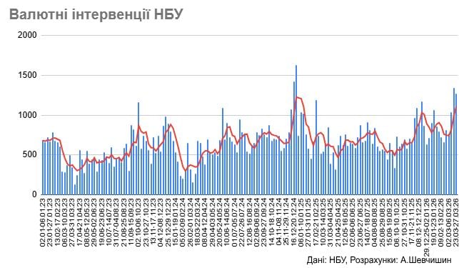 «Всего за март можем выйти на интервенции в $4,65 млрд, что будет самым большим уровнем с декабря 2024 года, когда был зафиксирован исторический максимум – $5,2 млрд», – подытожил Шевчишин.