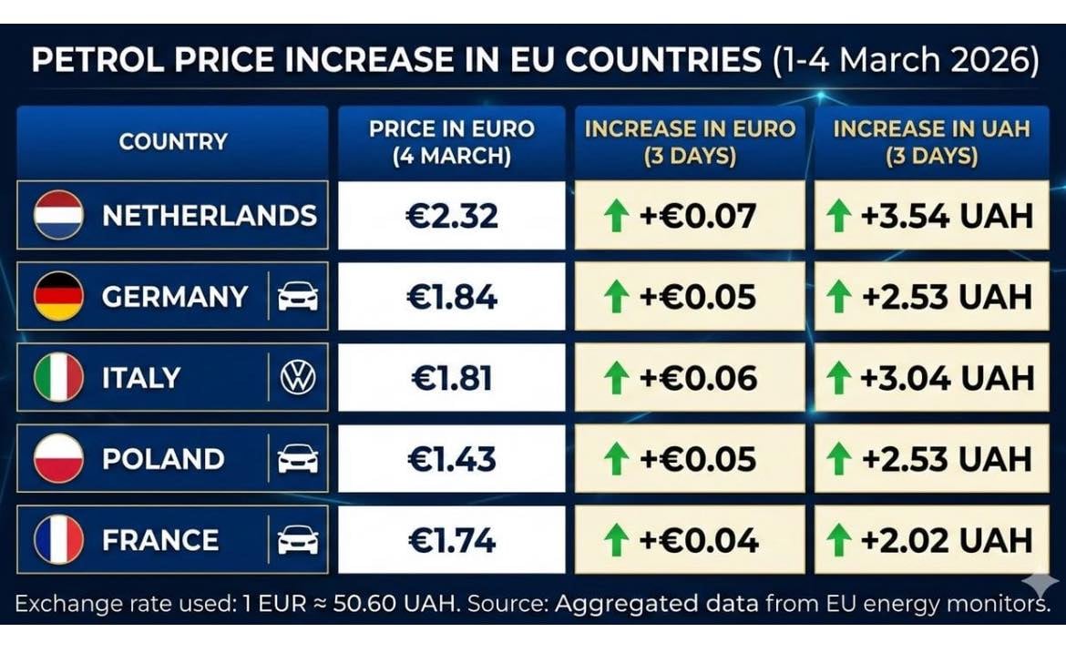 За два дня цены на топливо (бензин, дизель) в Украине выросли на 10-14% (в среднем +10 грн на литр). В Европе — на 2-3% (+ 2 — 3 грн). Об этом написал эксперт по социальной и экономической политике, эксминистр соцполитики Павел Розенко.