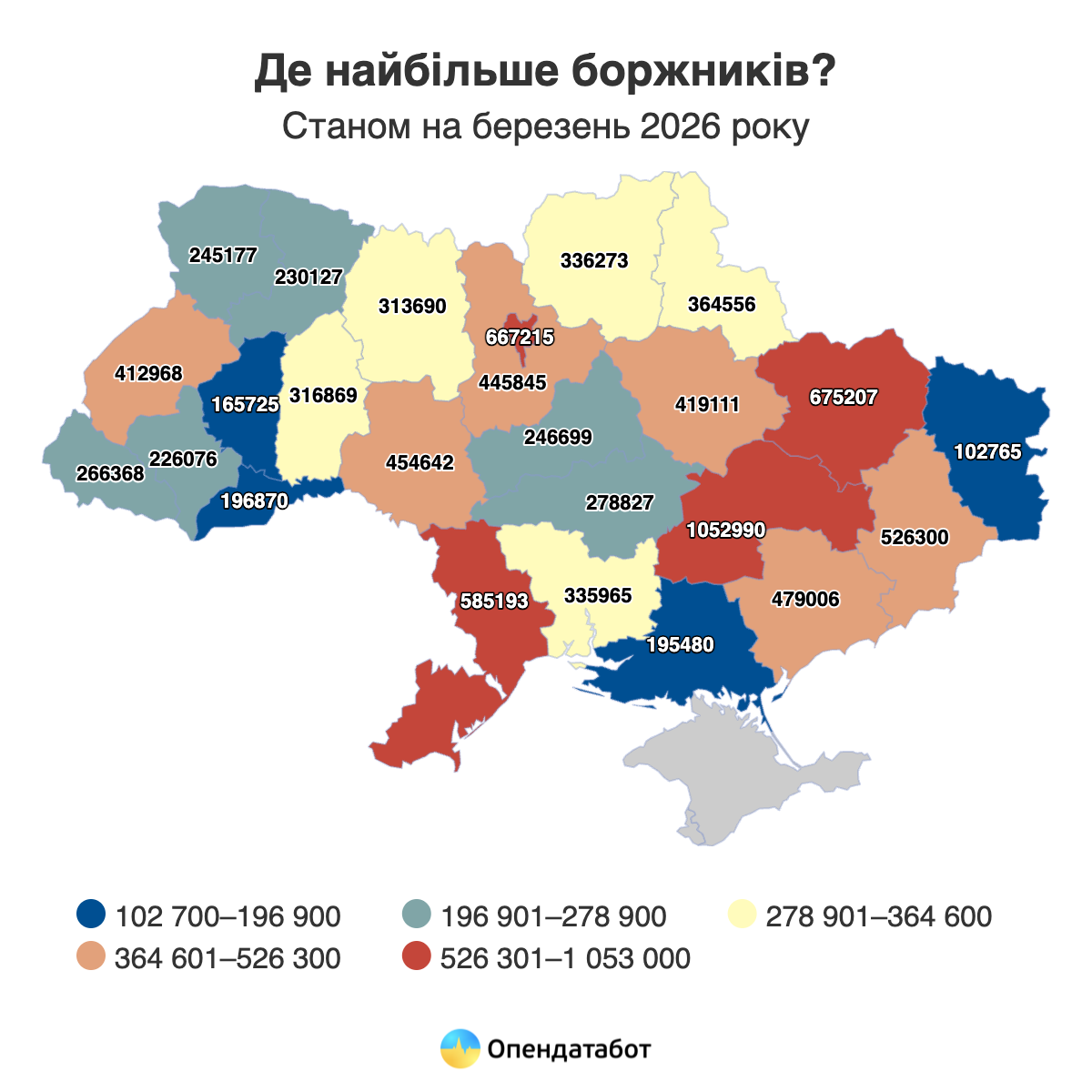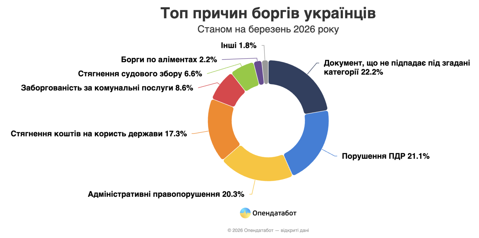 Украинцы продолжают накапливать долговые обязательства. По состоянию на начало марта 2026 года в Едином реестре должников (ЕРБ) зафиксировано уже более 9,5 миллионов записей. Только за последний год Реестр пополнился на 514 360 новых производств, что составляет прирост в 6%. Об этом свидетельствуют последние данные платформы Опендатабот.