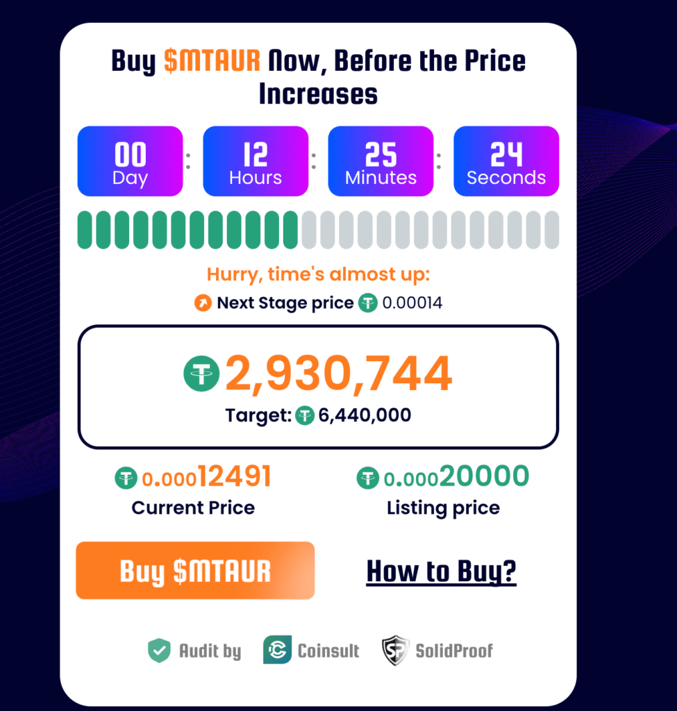 По текущей цене,За 1,25 доллара США можно купить 10 000 токенов MTAUR, а за 100 долларов США — 800 000 токенов. Это позволяет ранним участникам сохранять спокойствие, прежде чем получить более широкое присутствие на рынке.