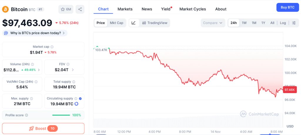 Источник: CoinMarketCap, 14 ноября 2025 г.