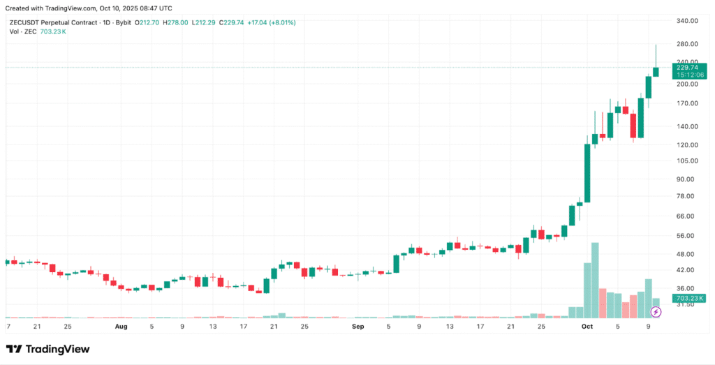 Многие на X называют это возвращением из «глубин финансов». Это цикл, в котором анонимные цифровые активы привлекают внимание, поскольку регулирующие органы настаивают на введении цифровых валют (CBD) и платежных систем, основанных на надзоре. ZEC поддерживается растущим спросом на частные транзакции, новыми обновлениями протоколов и ростом цен на рынке деривативов.