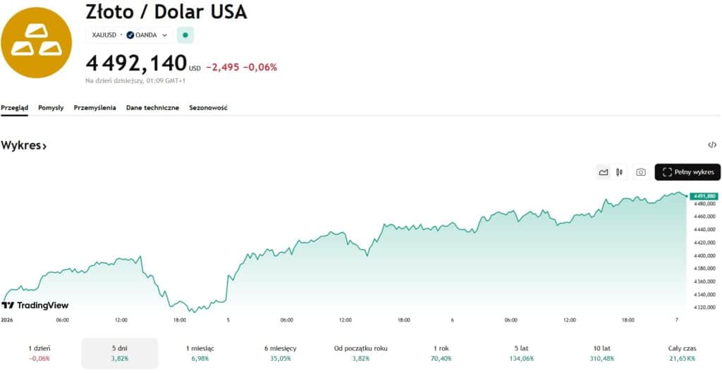 На момент написания унция золота стоит 4491 доллар, а его стоимость выросла почти на 4% за последние пять дней.